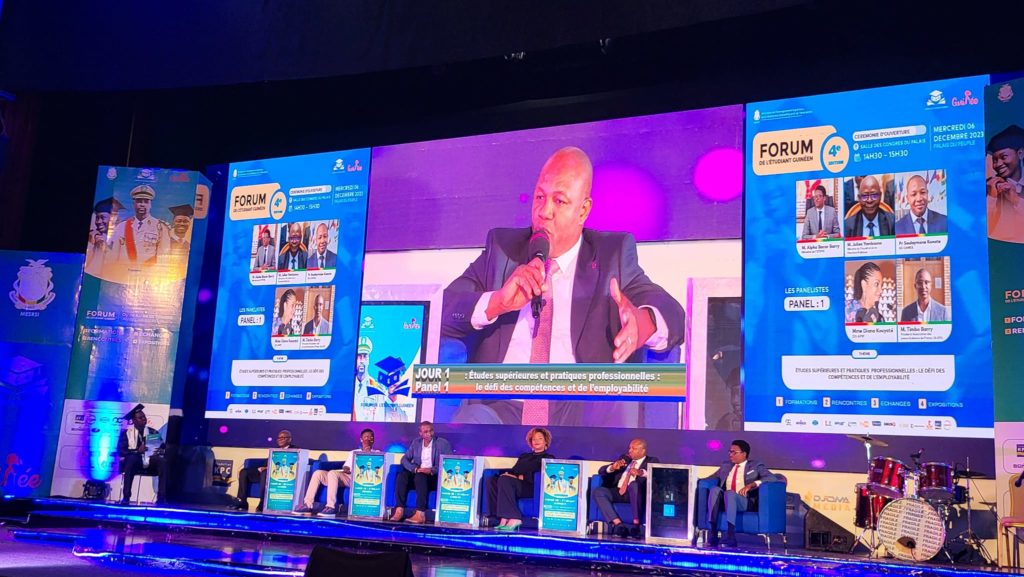 Le Secrétaire Général du CAMES, Pr Souleymane KONATÉ, a participé à un panel intitulé « Études supérieures et pratiques professionnelles : le défi des compétences et de l’employabilité », dans le cadre de la 4e édition du Forum de l’Étudiant Guinéen (FEG), qui s’est tenu du 6 au 8 décembre 2023 à Conakry.