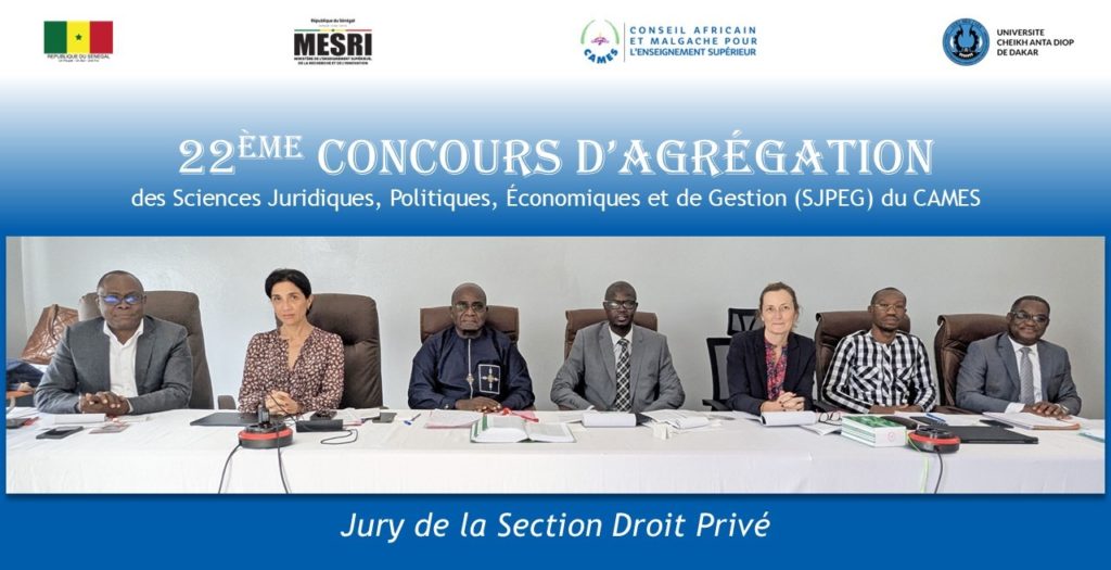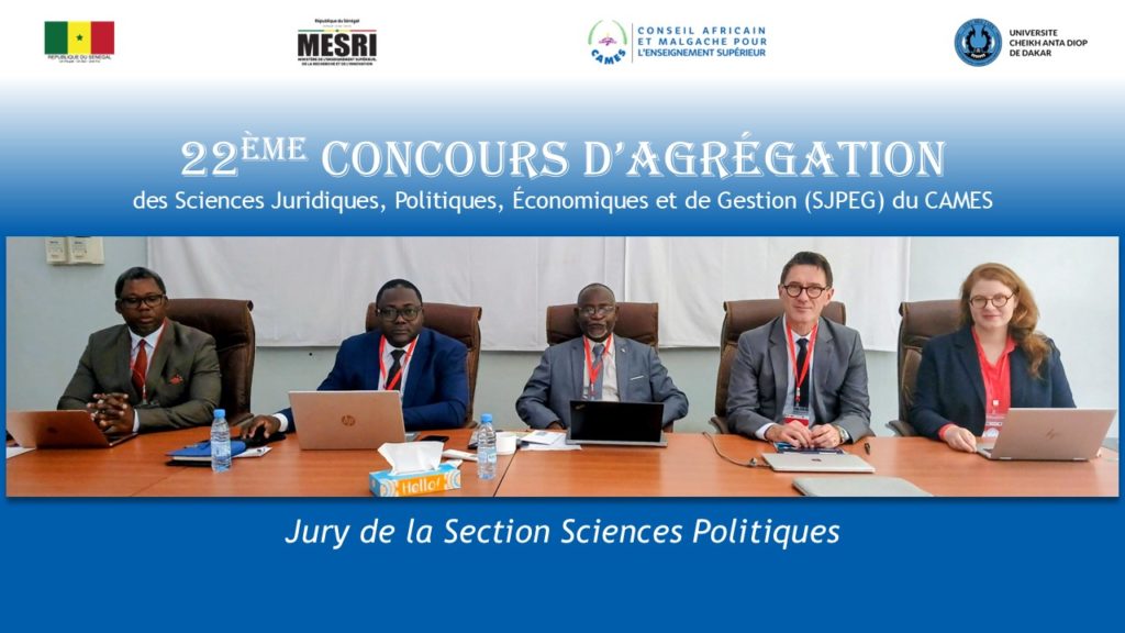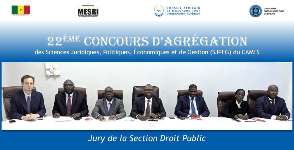 Cette 22ème Session du Concours d’agrégation des Sciences Juridiques, Politiques, Économiques et de Gestion du CAMES, se tient pour sa phase présentielle, à Dakar au Sénégal. Les six (6) sections du Concours sont encadrées par un Jury composé de 37 éminents experts dans leurs domaines respectifs.