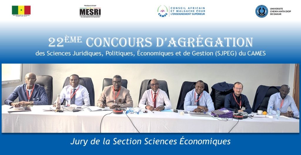 𝗔̀ 𝗹𝗮 𝗱𝗲́𝗰𝗼𝘂𝘃𝗲𝗿𝘁𝗲 𝗱𝗲𝘀 𝗺𝗲𝗺𝗯𝗿𝗲𝘀 𝗱𝗲𝘀 𝗝𝘂𝗿𝘆𝘀 𝗱𝘂 𝟮𝟮𝗲̀𝗺𝗲 𝗖𝗼𝗻𝗰𝗼𝘂𝗿𝘀 𝗱’𝗔𝗴𝗿𝗲́𝗴𝗮𝘁𝗶𝗼𝗻 𝗱𝗲𝘀 𝗦𝗝𝗣𝗘𝗚 𝗱𝘂 𝗖𝗔𝗠𝗘𝗦Nous vous invitons à découvrir en images, les éminents experts chargés d’évaluer les aptitudes des candidats aux fonctions d’enseignants du supérieur, pour la Session 2025 du Concours d’Agrégation des Sciences Juridiques, Politiques, Economiques et de Gestion du CAMES. Après la première épreuve organisée à distance du 18 au 28 octobre 2025, les trente-sept membres des Jurys sont réunis à Dakar pour évaluer les deuxième et troisième épreuves dédiées respectivement aux commentaires de texte ou de documents et aux leçons.𝗝𝘂𝗿𝘆 𝗱𝗲 𝗹𝗮 𝗦𝗲𝗰𝘁𝗶𝗼𝗻 𝗦𝗰𝗶𝗲𝗻𝗰𝗲𝘀 𝗘́𝗰𝗼𝗻𝗼𝗺𝗶𝗾𝘂𝗲𝘀 Les trente-huit (38) candidats de cette Section seront évalués par un Jury composé de sept (𝟬𝟳) membres, présidé par le Professeur Pam ZAHONOGO du Burkina Faso. Pour cette Section :• la 2ème épreuve porte sur un sujet de théorie économique.• la 3ème épreuve elle, porte, sur une matière d’économie générale choisie parmi les disciplines suivantes : politique économique, relations économiques internationales, histoire de la pensée et des faits économiques depuis 1870, économie du travail et des ressources humaines, économie du développement, économie de la santé, économie publique, statistique et économétrie, méthodes quantitatives.Retrouvez plus de détails sur les candidats et les Jurys dans la plaquette du Concours : www.lecames.org/wp-content/uploads/2025/11/Plaquette-22ème-Concours-dAgrégation-SJPEG-CAMES.pdf ... See MoreSee Less