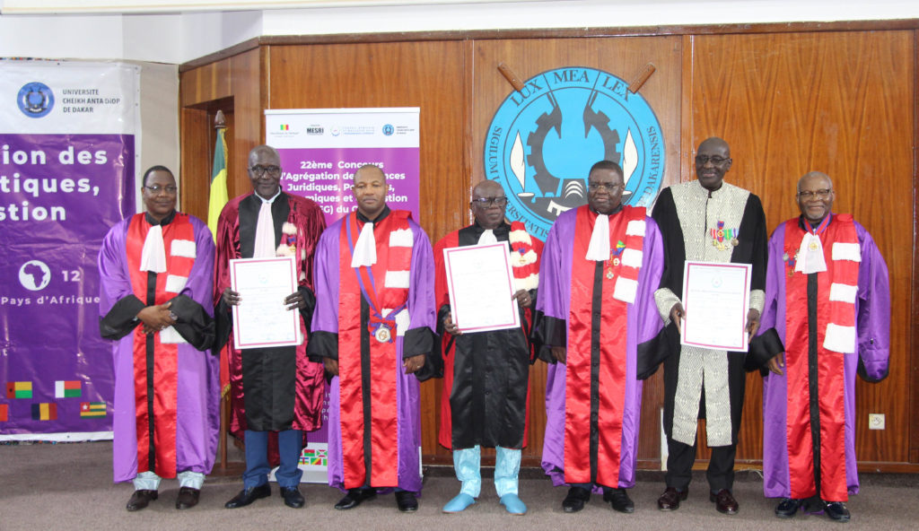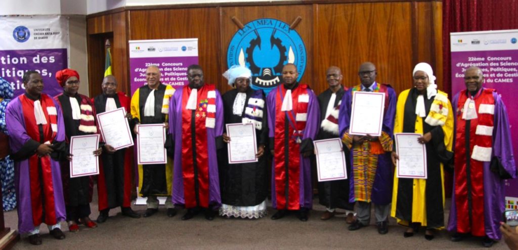 Une cérémonie solennelle de réception dans l’Ordre International des Palmes Académiques du CAMES (OIPA/CAMES) a été organisée, en marge de la cérémonie de clôture de la 22ème Session du Concours d’Agrégation des Sciences Juridiques, Politiques, Économiques et de Gestion du CAMES, tenue le 21 novembre 2025, à l’Université Cheikh Anta Diop de Dakar. Dix (10) Enseignants-chercheurs et Chercheurs du Sénégal et du Togo, ont ainsi été décorés aux Grades de Chevaliers et d’Officiers de l’Ordre International des Palmes Académiques (OIPA/CAMES).