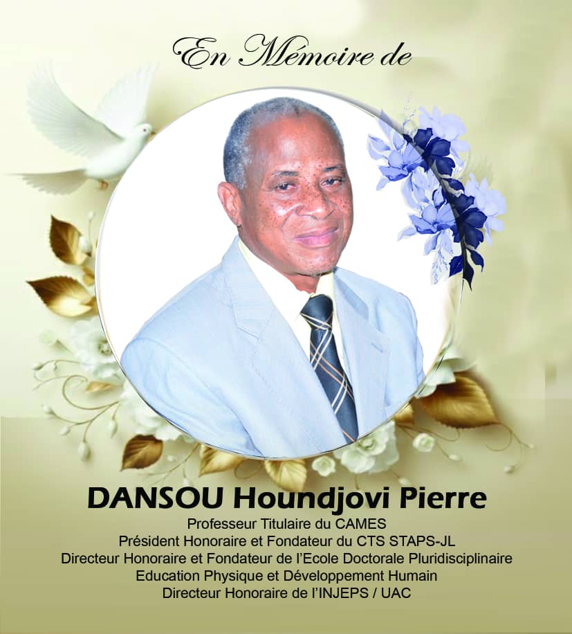 Le Secrétariat général du CAMES a appris avec émotion le rappel à Dieu, le 11 février 2026, du Professeur Pierre Houndjovi DANSOU, Professeur Titulaire de Physiologie de l’Effort à l’Université d’Abomey-Calavi (Bénin) et Président honoraire du Comité Technique Spécialisé (CTS) « Sciences et Techniques des Activités Physiques et Sportives, Jeunesse et Loisirs » (STAPS-JL) du CAMES.