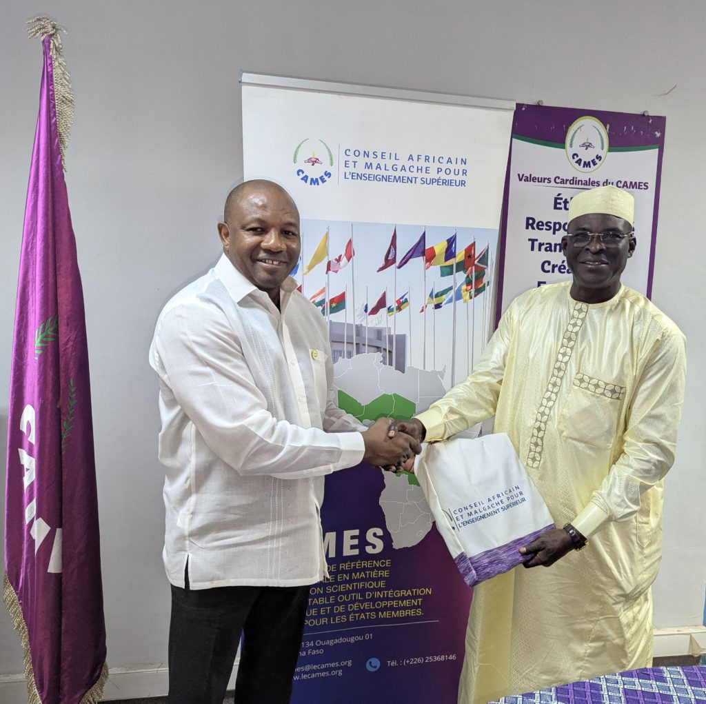Le Ministre tchadien des Télécommunications, de l’Économie Numérique et de la Digitalisation de l’Administration, Dr. Michel BOUKAR, accompagné de Son Excellence M. Mahamat Saleh ADOUM, Ambassadeur de la République du Tchad près du Burkina Faso, a fait une visite de courtoisie au Secrétaire Général du CAMES, Pr Souleymane KONATÉ, le 29 juillet 2025, dans les locaux du Secrétariat général à Ouagadougou.