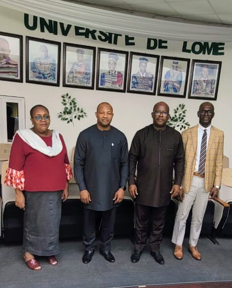 Le Secrétaire Général du CAMES, Professeur Souleymane KONATÉ, accompagné du Directeur des Programmes en charge de l’Assurance Qualité, de la Recherche et du partenariat, Professeur Saturnin ENZONGA YOCA, en mission à Lomé, a rendu une visite de courtoisie au Président de l’Université de Lomé, le 9 février 2026. Cette audience a eu lieu en présence de la Secrétaire Générale de l’Université et du Chef de cabinet du Président de l’Université.